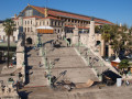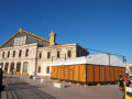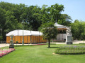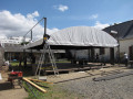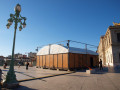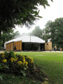La structure est de type parquet de bal: murs en bois, toît bâché et parquet de bois.
